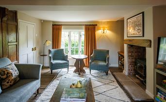 The farmhouse-style kitchen is made for cooking together, while the large dining table is where meals easily turn into hours of conversation. Outside, the private garden looks across to the Priory Orchard, particularly beautiful in autumn when the trees glow with seasonal colour. A firepit and outdoor seating mean you can still make the most of crisp evenings, wrapped up with a drink in hand.