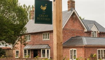 The Great Bustard is a 15 minute drive from Salisbury, straight up the A345 until high post where you turn left, and keep going all the way until Jubilee Hill where there is a right turn straight into Great Durnford.