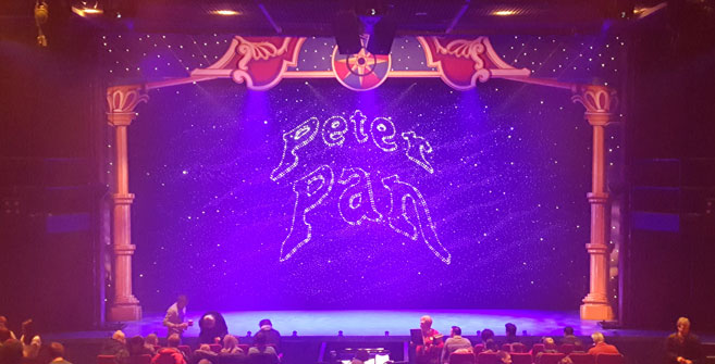 On a cold winters night I ventured out of Salisbury and made my way to the pantomime at Wyvern Theatre, Swindon. This year’s show is Peter Pan starring everyone’s favourite EastEnders star Adam Woodyatt (Ian Beale). We were welcomed in the foyer by people in appropriate Peter Pan outfits and Christmas jumpers a good indication that it would be a fun evening. We quickly warmed up with some mulled wine and nibbles then went to our seats to soak up some of the atmosphere. Not usually one to watch a pantomime I was quite excited to see what it had in store.