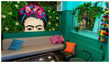 On entering Tinga, you won’t know where to look first! There’s the beautiful wall art depicting Frieda Kahlo, the luscious foliage framing the bar and the beautiful palm tree pillars, all of which are hand crafted.