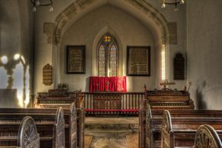 This tiny, charming church, which overlooks the River Till was built mainly in the 13th-century, of flint and stone chequerwork with two large Perpendicular windows. The little wooden bell-turret was added in the 19th-century. Inside, it has its original font and Georgian heraldic glass. The oak benches with Jacobean carved ends come from St Catherines in Haydon, Dorset. The church was originally owned by the religious crusading order of the Knights Hospitaller for 350 years.